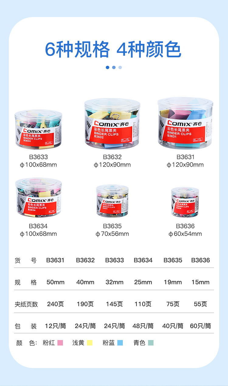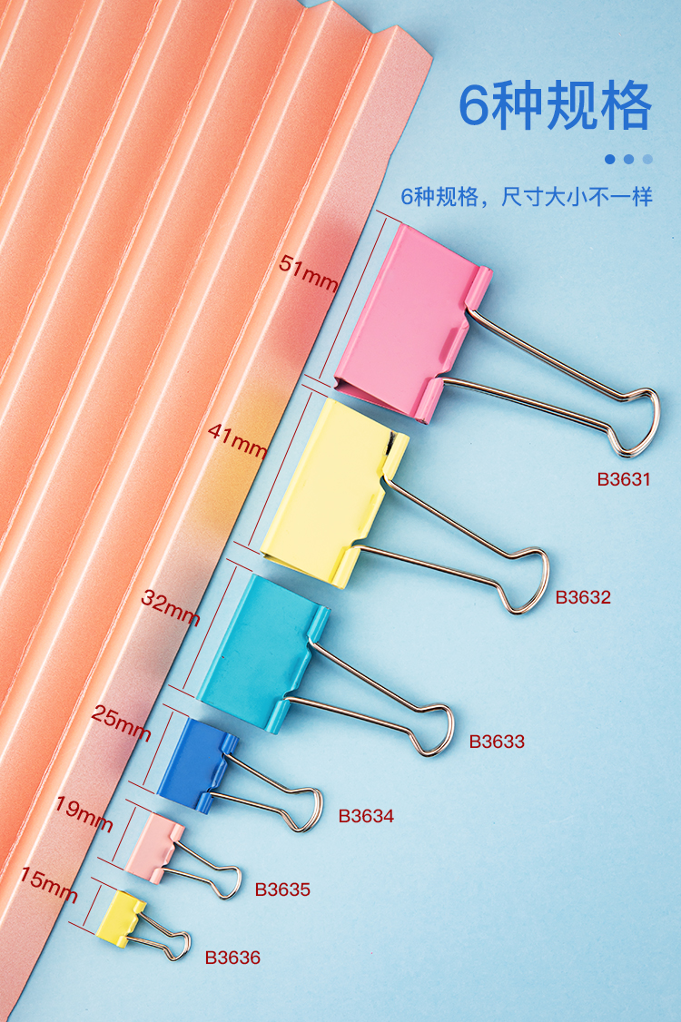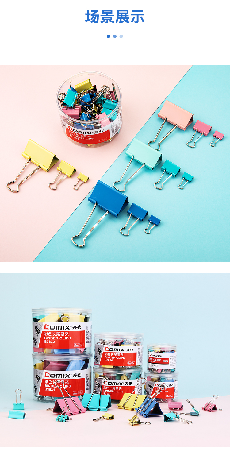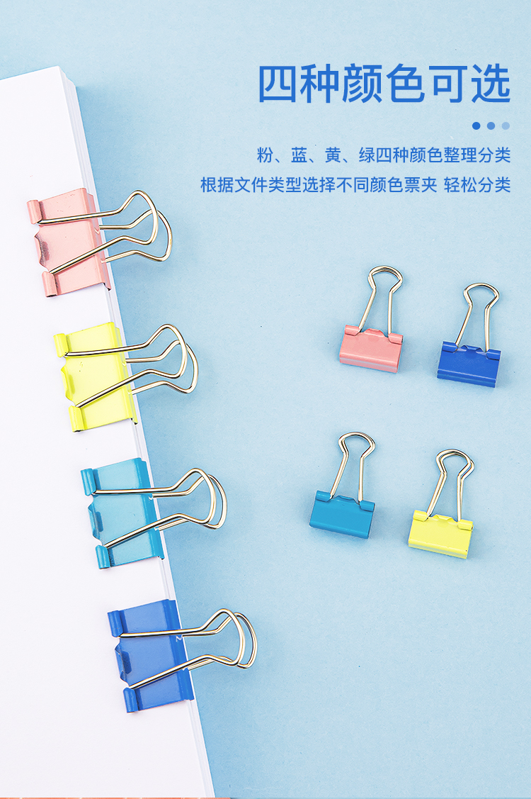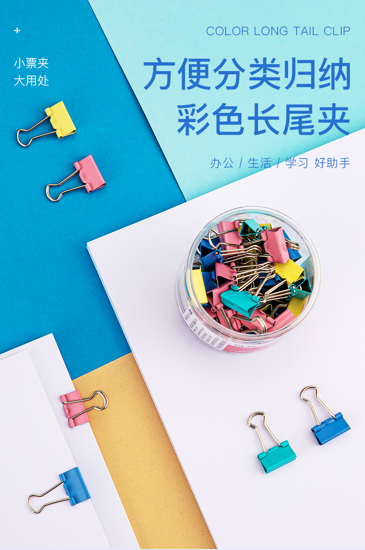 • 商品名称:齐心/COMIX B3632 长尾夹 24只41mm彩色票夹 金属燕尾夹 彩色