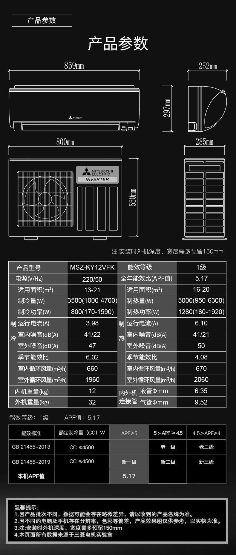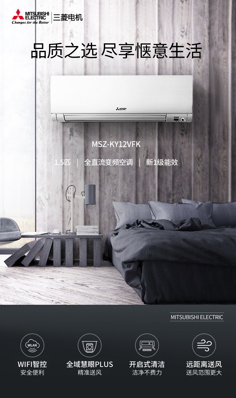 商品名称: 三菱/uni MSZ-KY12VFK 电机壁挂式 空调 新一级1.5匹变频 白色