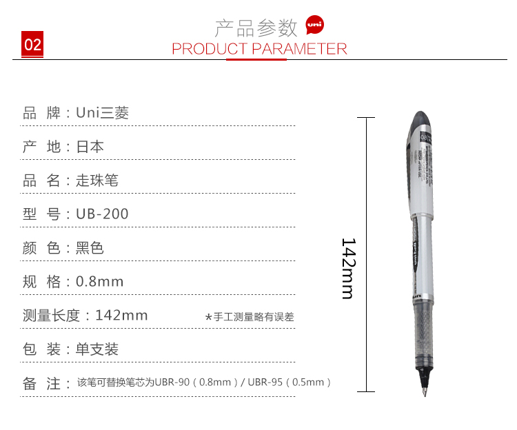 • 商品名称:三菱/uni UB-200黑色单支 普通中性笔 0.8mm 黑色