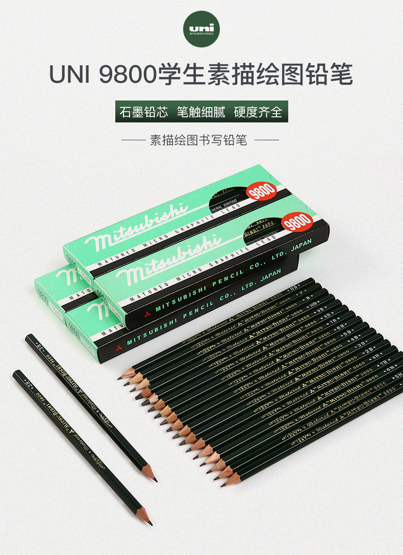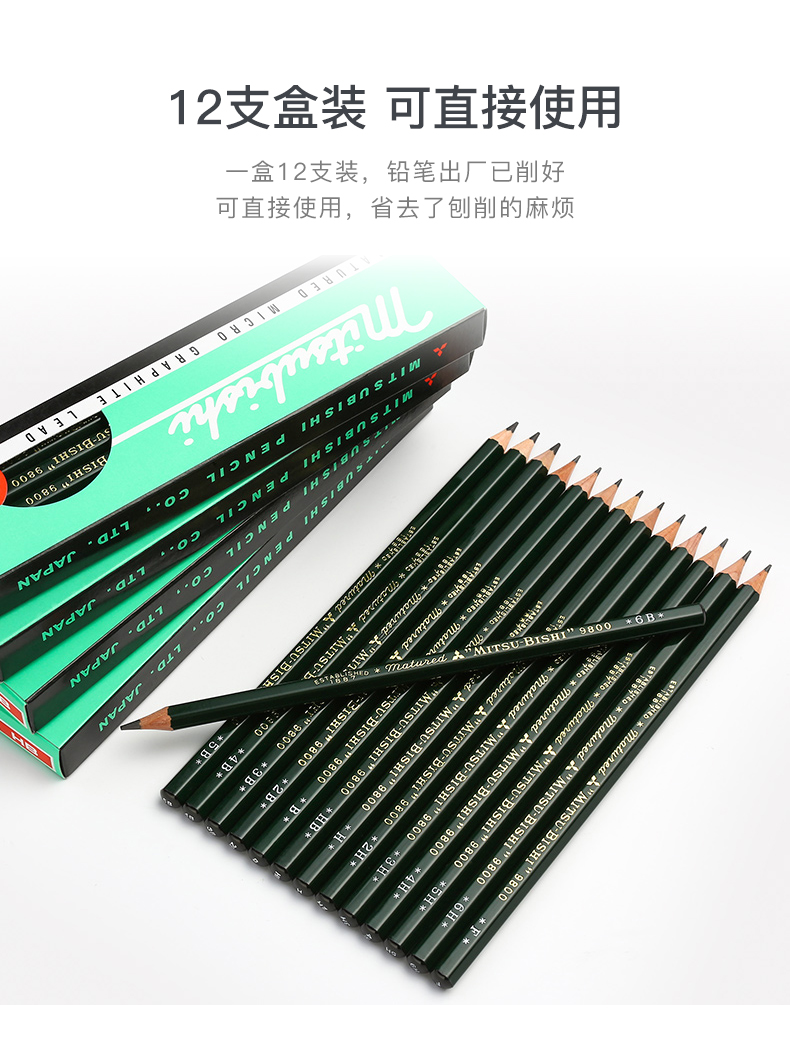 办公消耗用品及类似物品  > 文教用品(A0904)  > 笔(A090402)  >  三菱/uni  >  三菱/uni 9800-HB 普通铅笔 12支装 黑色