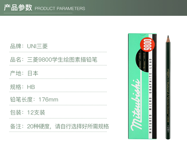 • 商品名称:三菱/uni 9800-HB 普通铅笔 12支装 黑色