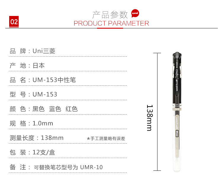 • 商品名称:三菱/uni UM-153黑色单支 普通中性笔 1.0mm 黑色