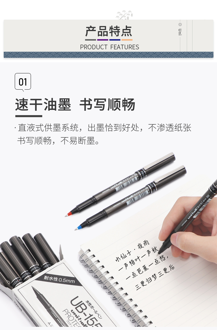 • 商品名称:三菱/uni UB-155黑色 普通中性笔 0.5mm子弹头 10支/盒 黑色