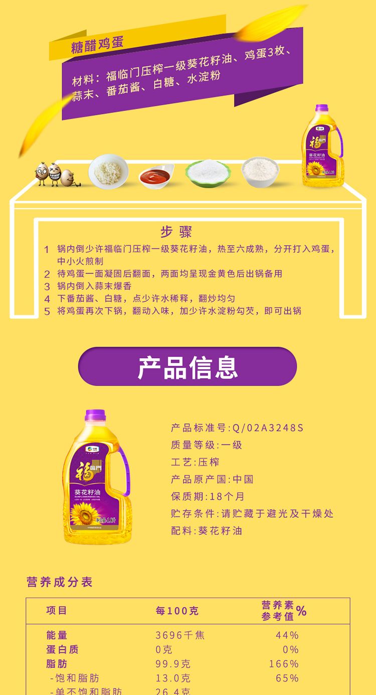• 商品名称:福临门 非转基因压榨葵花籽 食用油 1.8L