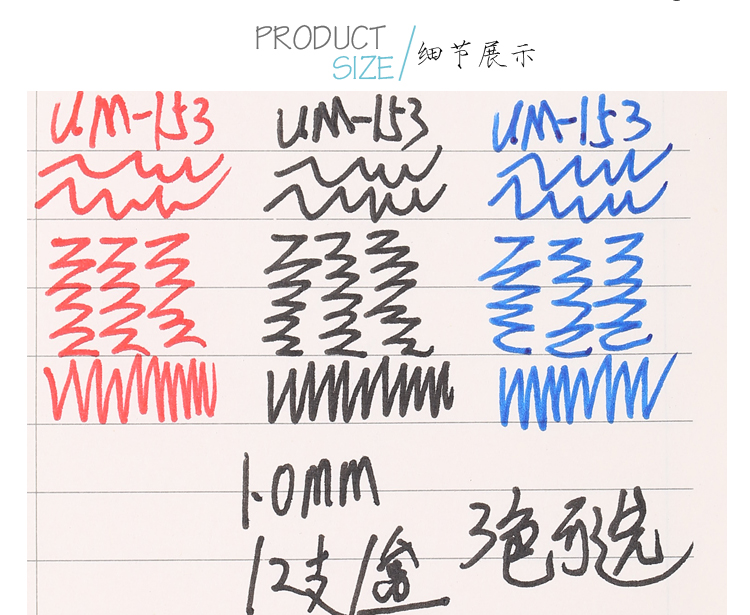 • 商品名称:三菱/uni UM-153 1.0mm 黑色 普通中性笔 12支/盒