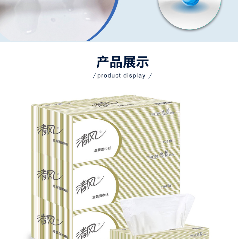 商品名称: 清风/APP B338A2 黑白 195mmx206mm*2层 抽纸 200抽/盒 36盒/箱