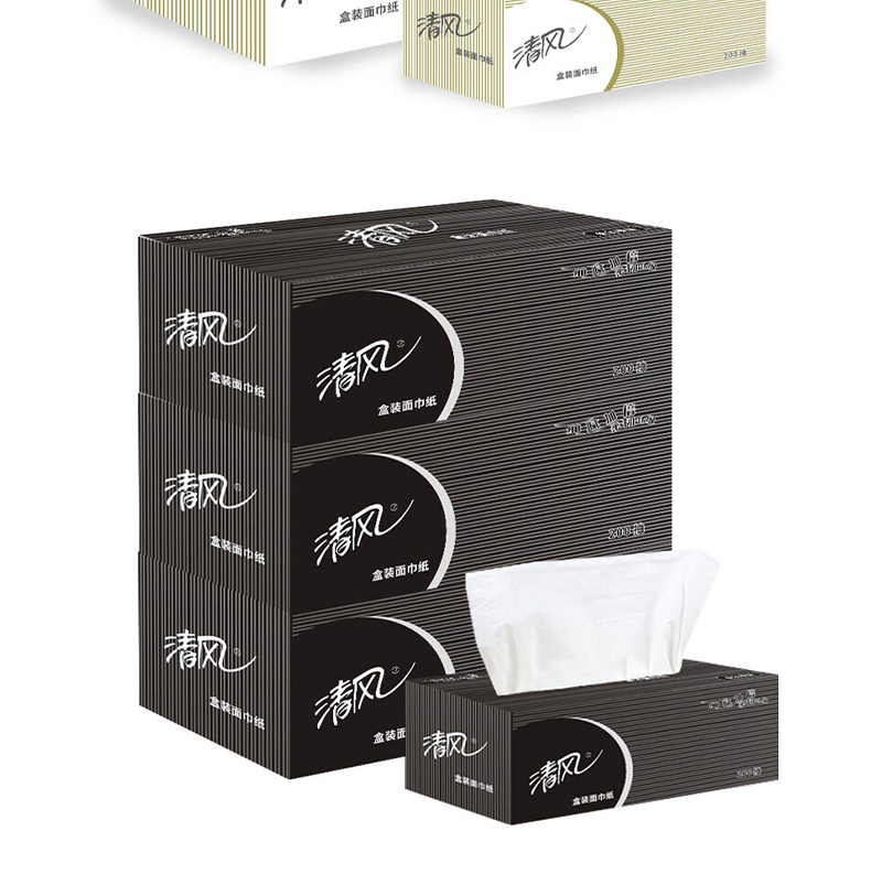 办公消耗用品及类似物品  > 清洁用品(A0905)  > 卫生用纸制品(A090501)  >  清风/APP  >  清风/APP B338A2 黑白 195mmx206mm*2层 抽纸 200抽/盒 36盒/箱