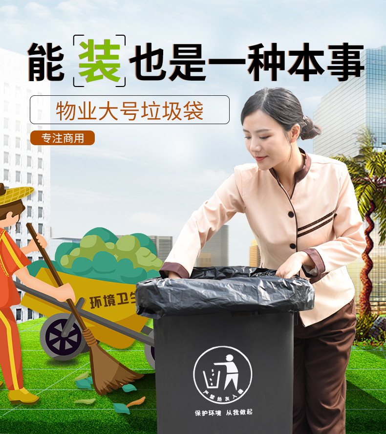 办公消耗用品及类似物品  > 清洁用品(A0905)  > 其他清洁用具(A090599)  >  京惠思创  >  京惠思创/jing hui si chu 大号商用加厚平口60*80cm 垃圾袋 黑色 30只/包