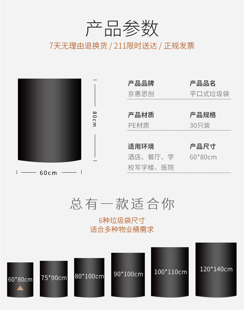 • 商品名称:京惠思创/jing hui si chu 大号商用加厚平口60*80cm 垃圾袋 黑色 30只/包