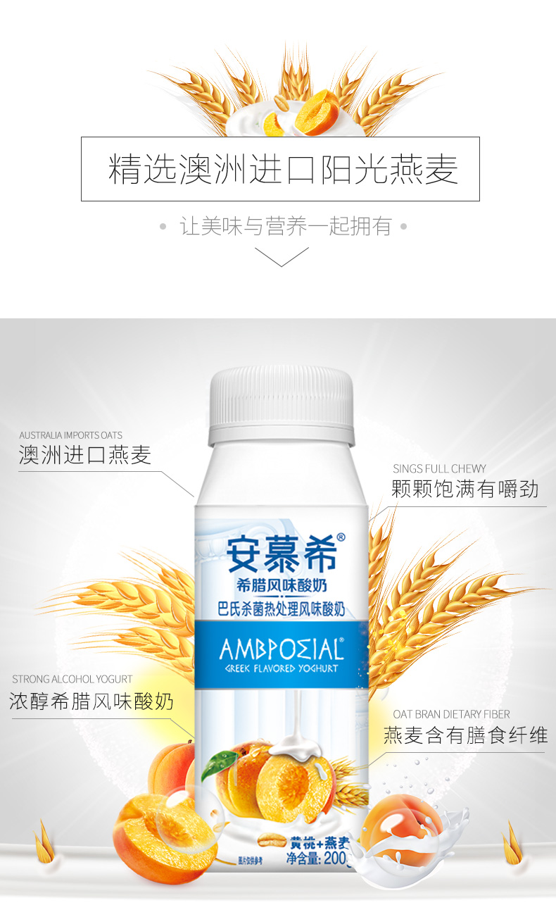 伊利 安慕希风味酸奶 牛奶乳品 黄桃燕麦200g*10瓶*1箱整箱装 黄桃燕麦10瓶