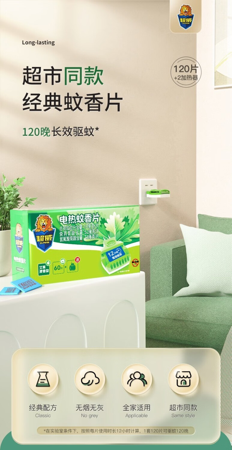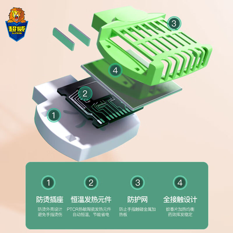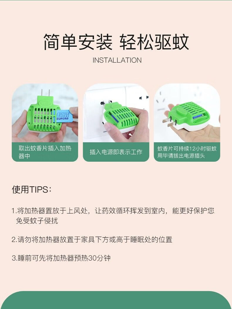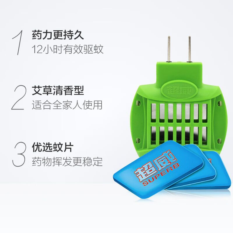 • 商品名称:超威/SUPERB 电热蚊香片 驱蚊器 家用宿舍防蚊灭蚊插电式蚊香片套装 78片1器