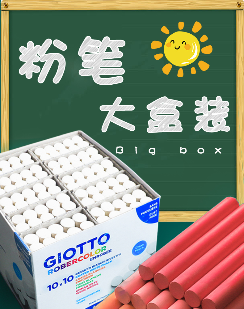 办公消耗用品及类似物品  > 文教用品(A0904)  > 文具(A090401)  >  齐多/giotto  >  齐多/giotto 彩色无尘粉笔 小学生教师用板报专用环保粉笔 白色10支装