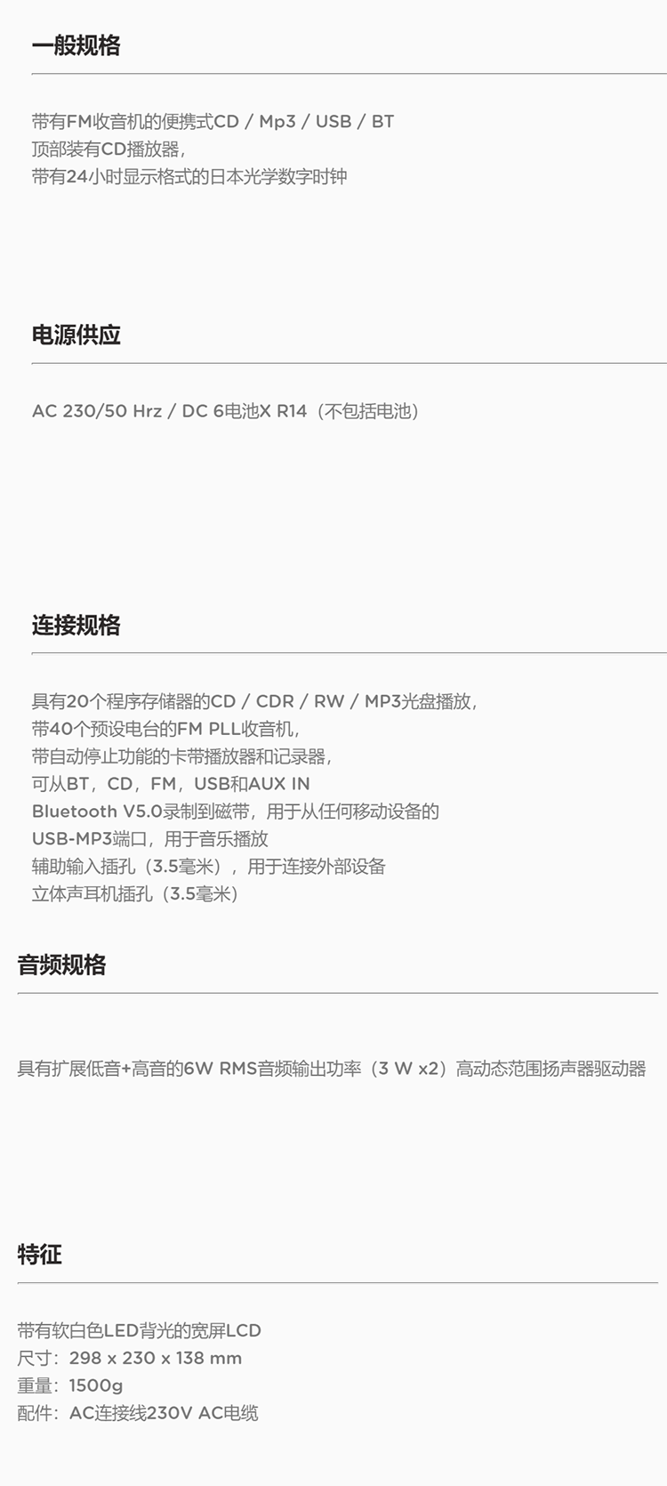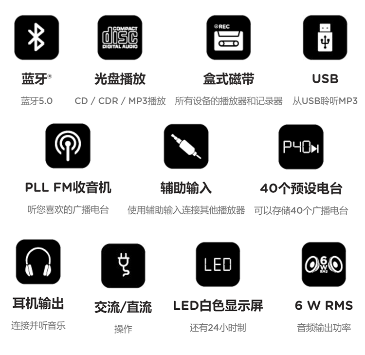 • 商品名称:爱华/aiwa 磁带卡带录音CD机播放器 蓝牙收音机便携音响 BBTC-550
