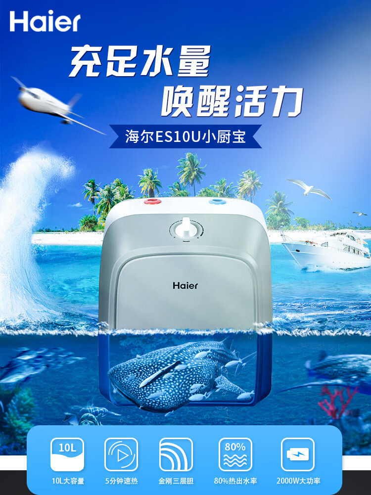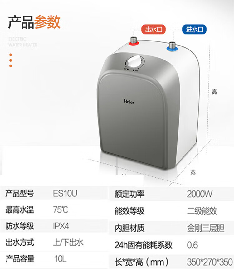 • 商品名称:海尔统帅 ES10U小厨宝 热水宝 10L速热即热储水式电热水器厨房卫生间洗脸迷你小型 ES10U