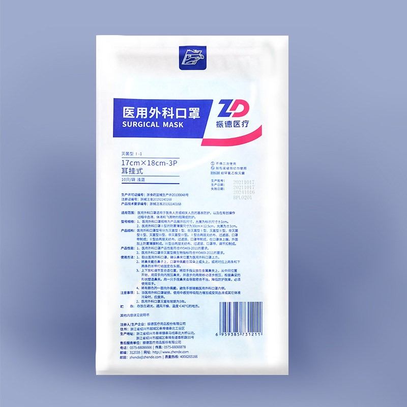 商品名称: 振德医疗 一次性医用外科口罩 灭菌型独立包装50只/盒 32盒/箱