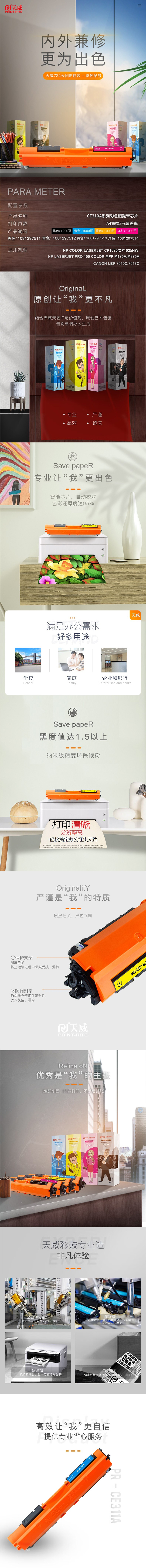 商品名称: 天威/PrintRite CE310A彩色粉盒四色套装