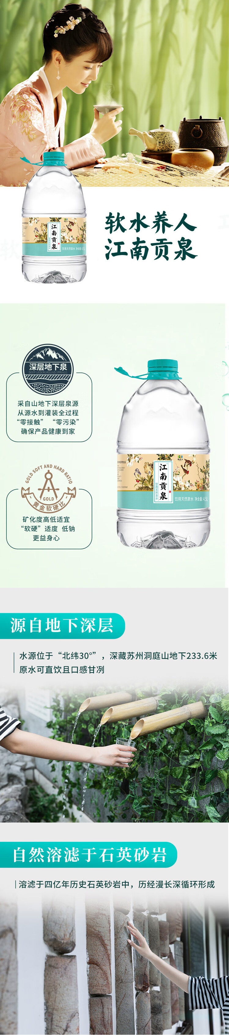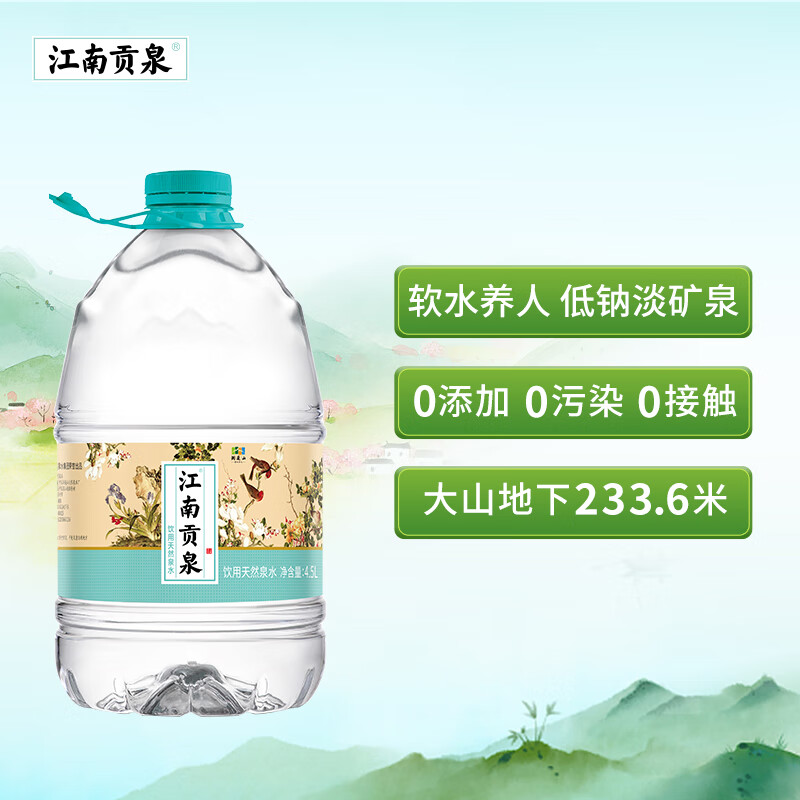 • 商品名称:江南贡泉 高端天然泉水4.5L*4桶整箱装桶装水